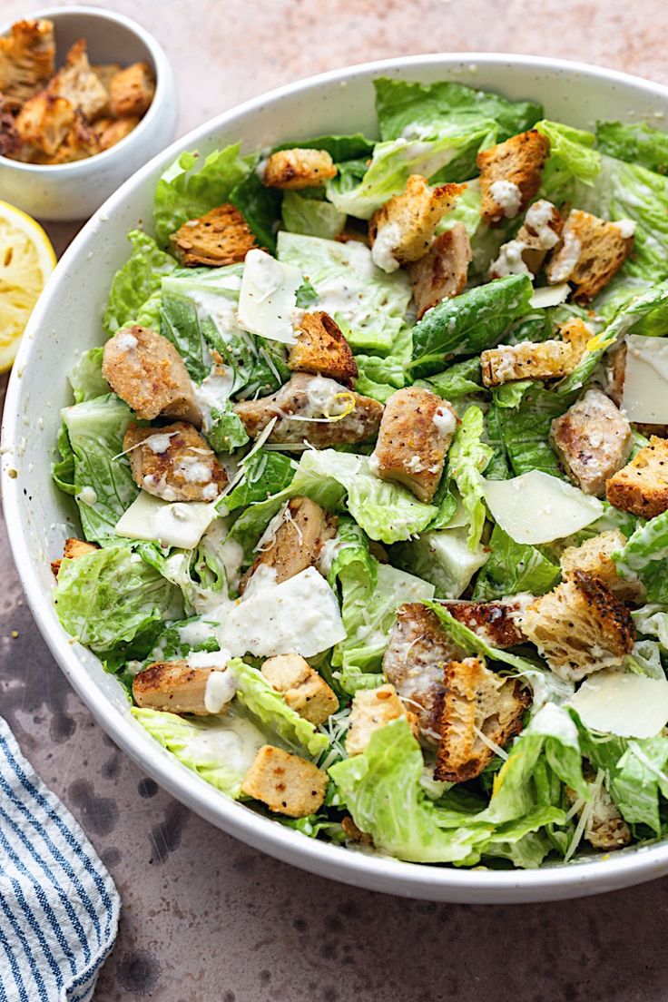 Crisp romaine lettuce tossed with creamy Caesar dressing, topped with crunchy croutons and grated Parmesan cheese